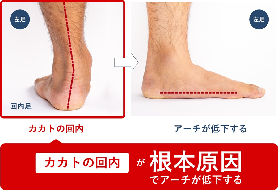 左図のようにカカトが回内すると
