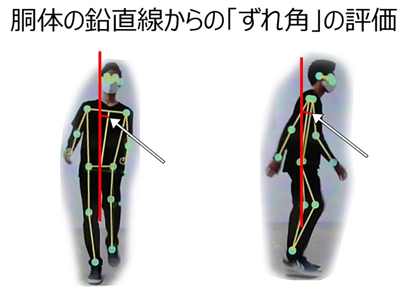 歩行中の胴体の鉛直線からの「ずれ角」