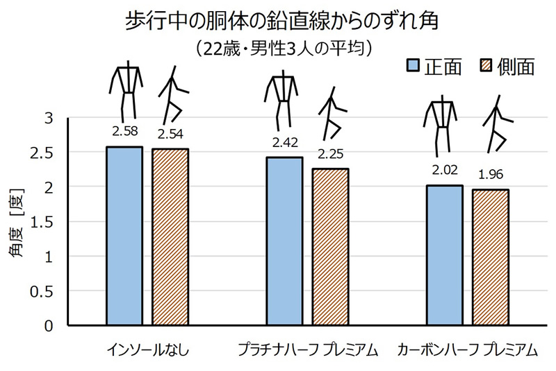 インソールなしと比べると横方向への安定感が増していることが分かる。