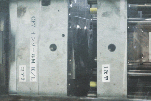 硬いプラスチックと軟らかいエラストマーの2つの素材を一体成形する技術。