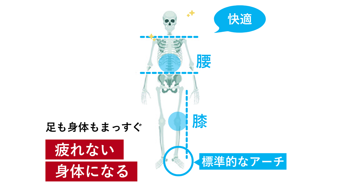 インソールで標準的なアーチを保つことで、身体のバランスが整い、快適な日常を取り戻すことができます。